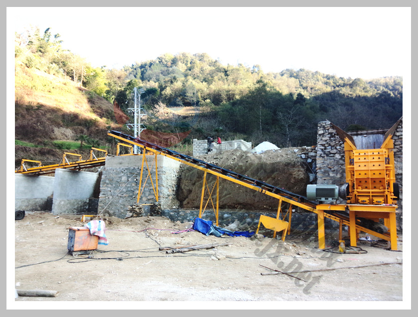 云南保山龍陵陳總一條皮帶輸送鏈接二合一破碎機,機昆明安寧施總有著多年石料場生產(chǎn)經(jīng)驗,針對物料磨損含鎂的情況,經(jīng)過多個破碎機生產(chǎn)廠家的考察,最終確定選擇云南中天最先進(jìn)的二合一高轉(zhuǎn)速反擊式破碎機。該套生產(chǎn)線根據(jù)地形情況,選擇了二合一配振動篩的設(shè)計方案,使用下來,磨損情況大大降低,預(yù)計每小時生產(chǎn)80噸,實際用下來接近每小時120噸,遠(yuǎn)遠(yuǎn)超出來客戶的預(yù)想! |