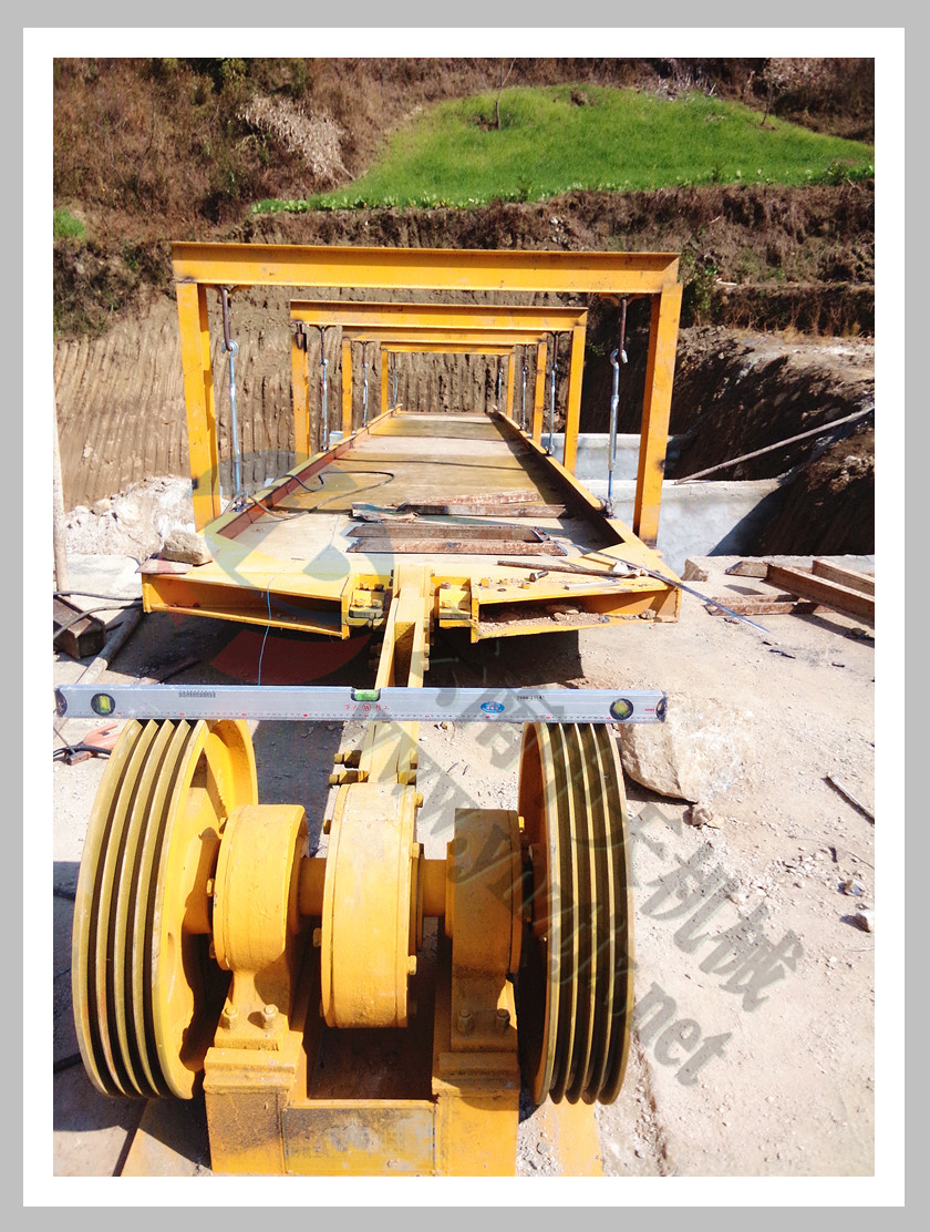 安裝過程中的大梭槽及給料機 |